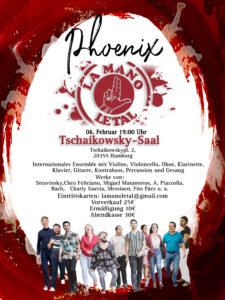 Die internationale Kammerformation vereint Gesang, Violine, Oboe, Klarinette, Klavier, Gitarre, Kontrabass sowie ein breites Spektrum an Percussionsinstrumenten. Musikerinnen und Musiker aus verschiedenen Ländern bringen ihre kulturellen Hintergründe ein und formen gemeinsam einen lebendigen Klangkörper – ein musikalischer Phönix, der sich immer wieder neu erhebt.